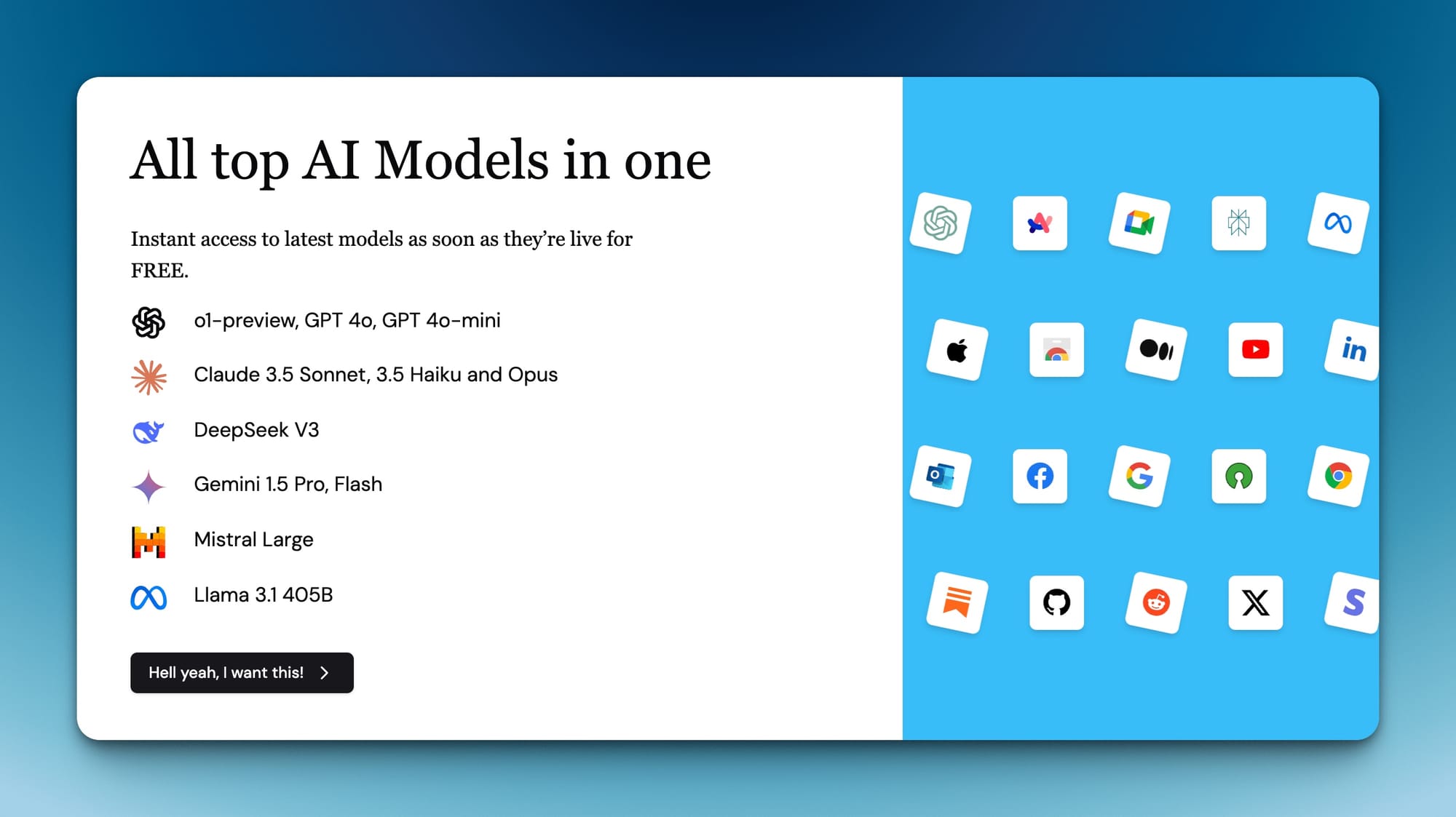 Merlin ist eine Browsererweiterung und eine mobile App für iOS und Android, die Zugriff auf über 20 der neuesten KI-Modelle bietet, darunter GPT-4o, Claude3.5, DeepSeek V3 und viele mehr. Im Hintergrund greift Merlin über die jeweiligen APIs auf die Modelle zu und präsentiert die Ergebnisse in einem benutzerfreundlichen, intuitiven Interface.